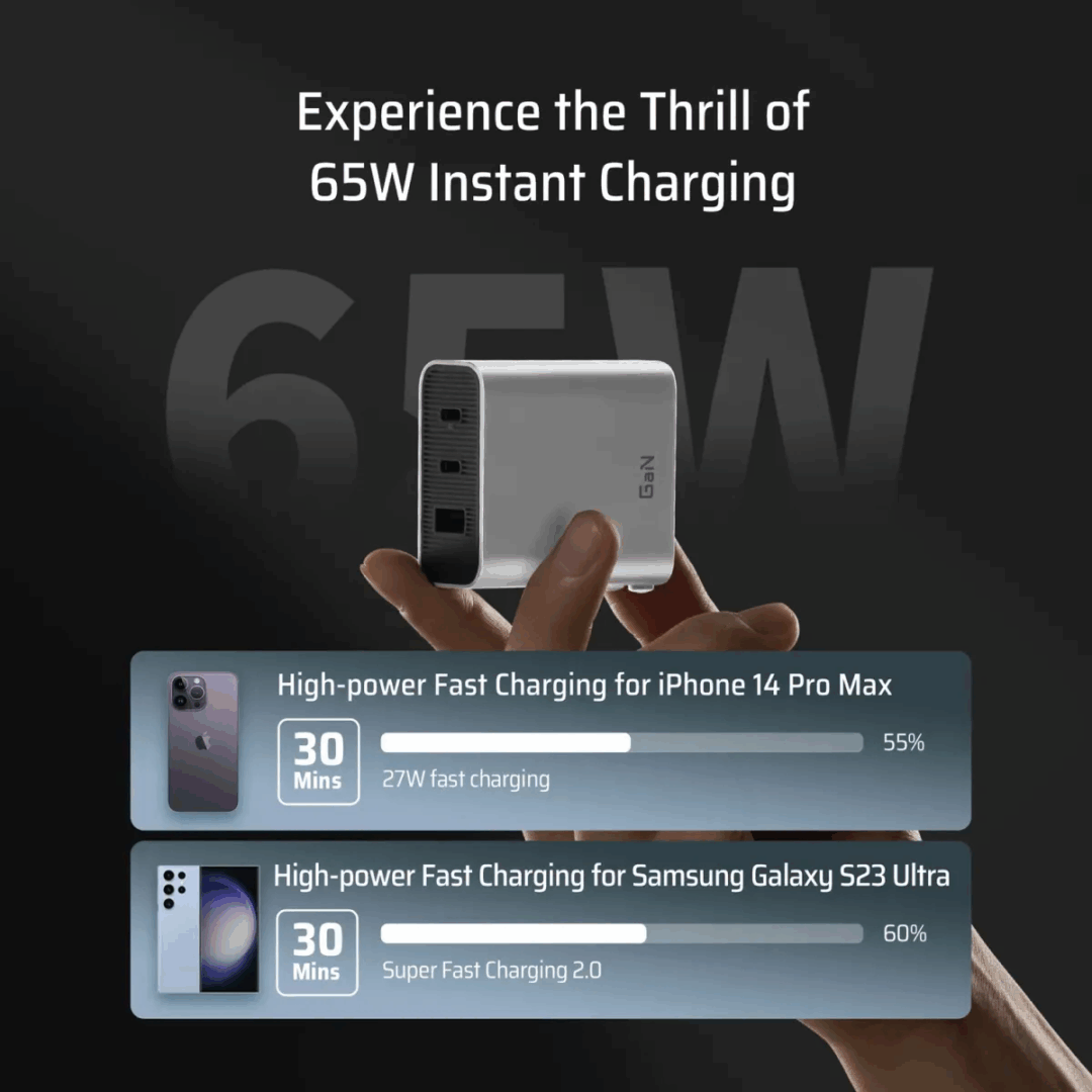 - Tiết kiệm thời gian: Sạc nhanh 65W giúp đầy pin các thiết bị chỉ trong thời gian ngắn.